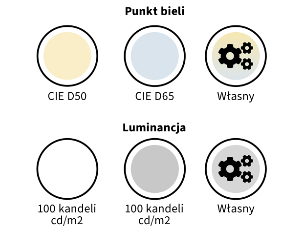 Twórz profile dla swoich wyświetlaczy z łatwością, korzystając z presetów, a następnie dostosuj Punkt Bieli i Luminancję. Szybko skonfiguruj idealne ustawienia i pracuj w świecie perfekcyjnie zoptymalizowanych kolorów.